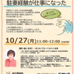 「ゆいフェス」10月27日のイベントに福永副会長が登壇されました。講演タイトルは「そんなつもりもなかったのに 駐妻経験が仕事になった」。出発時は1人、帰国時には4人目の出産を控えていた子育て真っ最中の身にして、しかも東京まで片道2時間の田舎町の社宅に住むことになった状況から、どうやって仕事のチャンス….続きを読む